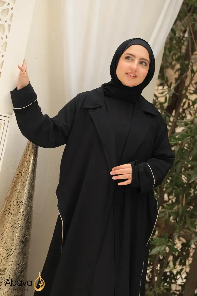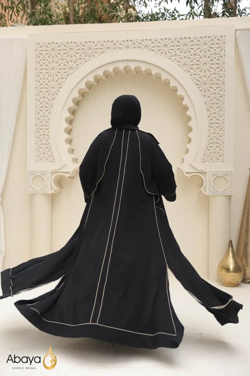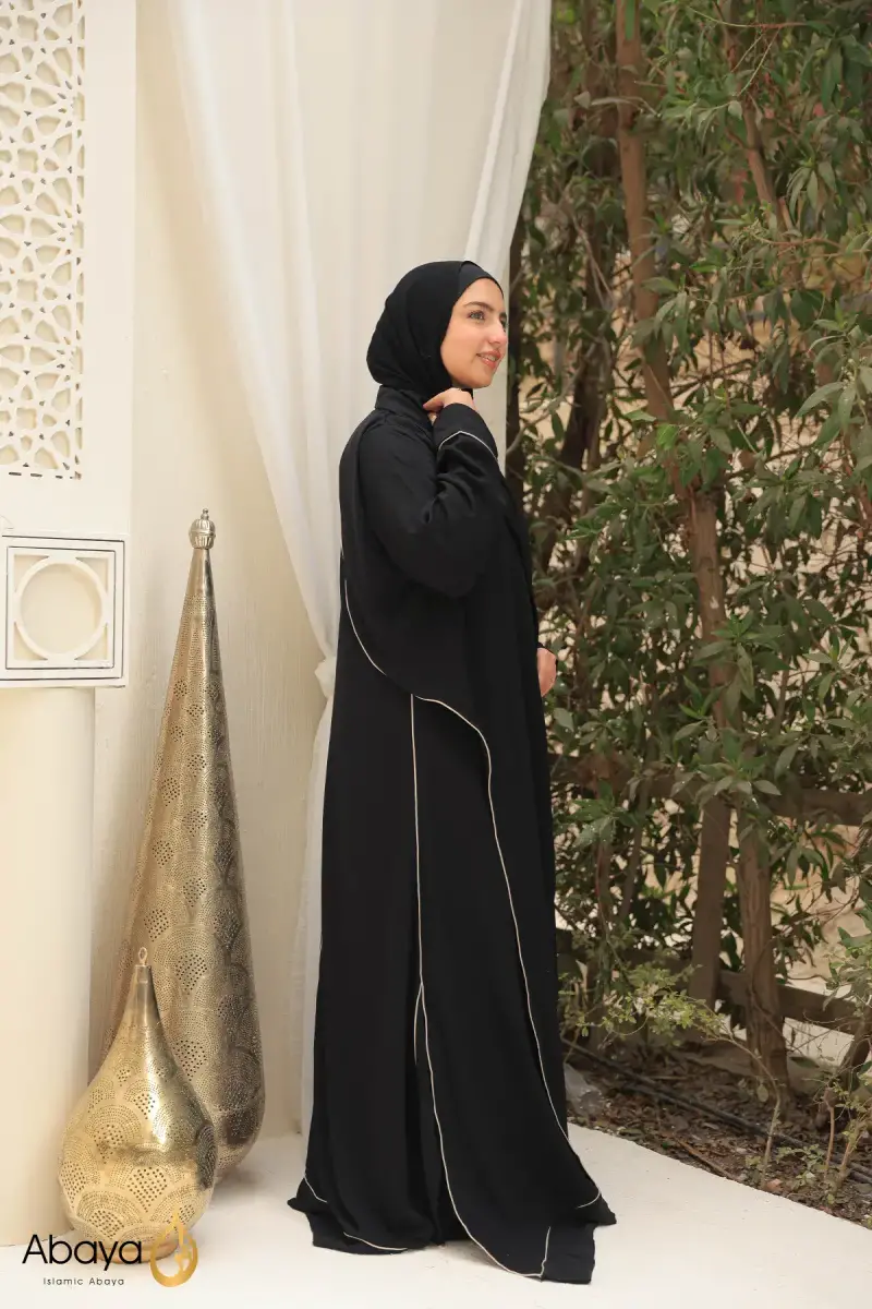 عباية أنيقة تجمع بين البساطة والتميّز، مزينة بخطوط أوف وايت ناعمة تمنحها لمسة عصرية راقية. تتميز برسمة فنية مميّزة على الظهر تضيف طابعًا فريدًا يلفت الأنظار. خيار مثالي لإطلالة أنيقة ومختلفة في المناسبات أو الخروجات اليومية.